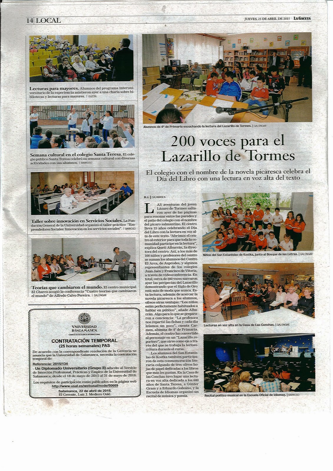 LA XV LECTURA DE "EL LAZARILLO" En "La Gaceta de Salamanca"